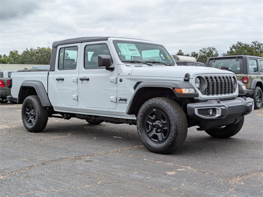 This Gladiator Sport is nicely equipped with Max Tow Package w/4.10 Axle Ratio (110 MPH Vehicle Max Speed Calibration, Anti-Spin Differential Rear Axle, Black Molded-In-Color Fender Flares (2-Piece), Class IV Receiver Hitch, Conventional Differential Front Axle, Dana M210 Wide Front Axle, Dana M220 Wide Rear Axle, Daytime Running Lamp System, and Heavy-Duty Engine Cooling), Quick Order Package 24B Sport, Trailer Tow & Aux Switch Group (Auxiliary Switches and Trailer Hitch Zoom), 12.3" Touchscreen Display, 4-Wheel Disc Brakes, 4G LTE Wi-Fi Hot Spot, 8 Speakers, ABS brakes, Air Conditioning, Alexa Built-In, AM/FM radio: SiriusXM, Apple CarPlay, Apple CarPlay/Android Auto, Brake assist, Cloth Low-Back Bucket Seats, Compass, Connectivity - US/Canada, Delay-off headlights, Driver door bin, Driver vanity mirror, Dual front impact airbags, Dual front side impact airbags, Electronic Stability Control, Front anti-roll bar, Front Bucket Seats, Front Center Armrest w/Storage, Front fog lights, Front reading lights, Google Android Auto, Illuminated entry, Integrated roll-over protection, Low tire pressure warning, Manufacturer's Statement of Origin, MOPAR Spray In Bedliner, Normal Duty Suspension, Occupant sensing airbag, Outside temperature display, Overhead airbag, Panic alarm, ParkView Rear Back-Up Camera, Passenger door bin, Passenger vanity mirror, Power steering, Power windows, Radio data system, Radio: Uconnect 5 w/12.3" Display, Rear anti-roll bar, Rear reading lights, Remote keyless entry, Speed control, Split folding rear seat, Steering wheel mounted audio controls, Tachometer, Telescoping steering wheel, Tilt steering wheel, Traction control, Trip computer, USB Host Flip, Variably intermittent wipers, Voltmeter, and Wheels: 17" x 7.5" Black Steel Styled.