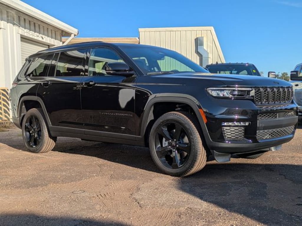 This Grand Cherokee L Limited is nicely equipped with Black Appearance Package (Gloss Black Exterior Accents and Wheels: 20" x 8.5" Gloss Black Painted Aluminum), Quick Order Package 23E (DISC), 3.45 Rear Axle Ratio, 3rd row seats: split-bench, 4-Wheel Disc Brakes, 6 Speakers, ABS brakes, Active Noise Control System, Air Conditioning, Alloy wheels, AM/FM radio: SiriusXM with 360L, Anti-whiplash front head restraints, Audio memory, Auto High-beam Headlights, Automatic temperature control, Brake assist, Bumpers: body-color, Capri Leatherette Seats, Compass, Delay-off headlights, Driver door bin, Driver vanity mirror, Dual front impact airbags, Dual front side impact airbags, Dual-Pane Panoramic Sunroof, Electronic Stability Control, Emergency communication system, Four wheel independent suspension, Front anti-roll bar, Front Bucket Seats, Front Center Armrest w/Storage, Front dual zone A/C, Front fog lights, Front reading lights, Fully automatic headlights, Garage door transmitter, Heated door mirrors, Heated front seats, Heated rear seats, Heated steering wheel, Illuminated entry, Interior Rear Facing Camera, Knee airbag, Low tire pressure warning, Manual Fold Seatbacks, Memory seat, Model Year Tracking, Navigation System, Normal Duty Suspension, Occupant sensing airbag, Outside temperature display, Overhead airbag, Overhead console, Panic alarm, ParkView Rear Back-Up Camera, Passenger door bin, Passenger vanity mirror, Power door mirrors, Power driver seat, Power Liftgate, Power passenger seat, Power steering, Power windows, Radio data system, Radio: Uconnect 5 Nav w/10.1" Display, Rear air conditioning, Rear anti-roll bar, Rear reading lights, Rear window defroster, Rear window wiper, Reclining 3rd row seat, Remote keyless entry, Security system, Speed control, Speed-Sensitive Wipers, Split folding rear seat, Spoiler, Steering wheel mounted audio controls, Tachometer, Telescoping steering wheel, Tilt steering wheel, Traction control, Trip computer, Turn signal indicator mirrors, Variably intermittent wipers, Voltmeter, and Wheels: 18" x 8.0" Polished/Painted Aluminum.