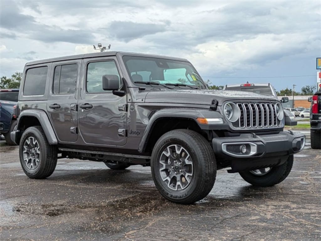 This Wrangler Sahara is nicely equipped with Quick Order Package 24G Sahara, 110 MPH Vehicle Max Speed Calibration, 3.45 Overall Top Gear Ratio, 4-Wheel Disc Brakes, 4G LTE Wi-Fi Hot Spot, 8 Speakers, ABS brakes, Air Conditioning, Alloy wheels, AM/FM radio: SiriusXM, Apple CarPlay, Apple CarPlay/Android Auto, Automatic temperature control, Aux Battery, Body Color 3-Piece Hard Top, Brake assist, Cloth Low-Back Bucket Seats, Compass, Connectivity - US/Canada, Delay-off headlights, Driver door bin, Driver vanity mirror, Dual front impact airbags, Dual front side impact airbags, Electronic Stability Control, Emergency communication system: Jeep Connect, Freedom Panel Storage Bag, Front anti-roll bar, Front Bucket Seats, Front Center Armrest w/Storage, Front dual zone A/C, Front fog lights, Front reading lights, Fully automatic headlights, Google Android Auto, Heated door mirrors, Heated front seats, Heated steering wheel, Heavy Duty Suspension w/Gas Shocks, Illuminated entry, Integrated Center Stack Radio, Integrated roll-over protection, Low tire pressure warning, MOPAR All-Weather Floor Mats, Non-Lock Fuel Cap w/o Discriminator, Occupant sensing airbag, Outside temperature display, Overhead airbag, Panic alarm, ParkView Rear Back-Up Camera, Passenger door bin, Passenger vanity mirror, Power door mirrors, Power steering, Power windows, Radio data system, Radio: Uconnect 5 w/12.3" Display, Rear anti-roll bar, Rear reading lights, Rear Window Defroster, Rear Window Wiper/Washer, Remote keyless entry, Security system, Speed control, Split folding rear seat, Steering wheel mounted audio controls, Stop-Start Dual Battery System, Tachometer, Telescoping steering wheel, Tilt steering wheel, Traction control, Trip computer, Variably intermittent wipers, Voltmeter, Wheels: 18" x 7.5 Machine/Painted Gray, and Wheels: 18" x 7.5" Machine/Painted Gray.