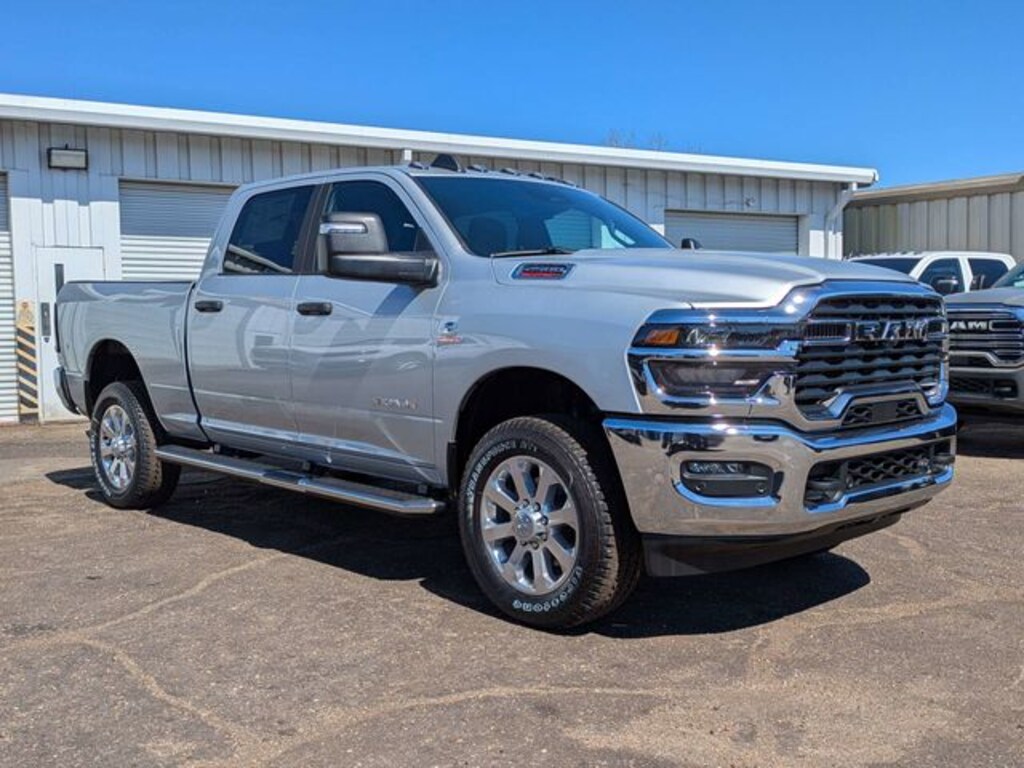 This 2500 Big Horn is nicely equipped with Big Horn Level 1 Plus Equipment Group (12" Touchscreen Display, 2 Way Rear Headrest Seat, 2nd Row in Floor Storage Bins, 4 Way Front Headrests, 40/20/40 Split Bench Seat, 4G LTE Wi-Fi Hot Spot, 9 Alpine Speakers with Subwoofer, Air Conditioning ATC with Dual Zone Control, Alexa Built-in, Anti-Spin Differential Rear Axle, Apple CarPlay, Auto Power-Folding Mirrors, Auto-Dimming Rear-View Mirror, Black Exterior Mirrors, Connected Travel and Traffic Services, Connectivity - US/Canada, Disassociated Touchscreen Display, Dual Glove Boxes, Emergency Vehicle Alert System (EVAS), Exterior Mirrors Courtesy Lamps, Exterior Mirrors with Heating Element, Exterior Mirrors with Supplemental Signals, Foam Bottle Insert (door Trim Panel), Folding Flat Load Floor Storage, Footwell Courtesy Lamp, For Details, Visit DriveUconnect.com, For More Info, Call 800-643-2112, Forward and Reverse Utility Lights, Front Armrest with Cupholders, Front Center Seat Cushion Storage, Front Seat Back Map Pockets, Global Telematics Box Module, Glove Box Lamp, Google Android Auto, GPS Antenna Input, GPS Navigation, HD Radio, Integrated Voice Command with Bluetooth, LED Bed Lighting, Locking Lower Glove Box, Luxury Steering Wheel, Manual Adjust 4-Way Front Passenger Seat, Mirror Running Lights, MOPAR Deployable Bed Step, MOPAR Spray in Bedliner, Off-Road Info Pages, Power 2-Way Driver Lumbar Adjust, Power Adjust 8-Way Driver Seat, Power Adjust Mirrors, Power Heated Folding Telescopic Mirrors, Power Telescoping Mirrors, Power-Adjustable Convex Aux Mirrors, Premium Cloth 40/20/40 Bench Seat, Radio: Uconnect 5 Navigation with 12.0" Display, Rear 60/40 Folding Seat, Rear Dome with on/Off Switch Lamp, Remote Start System, Remote USB Port - Charge Only, Selectable Tire Fill Alert, SiriusXM Radio Service, SiriusXM with 360L, Steering Wheel Mounted Audio Controls, Storage Tray, and Trailer Tow Pages), Heated Seats and Wheel Group (Heated Front Seats and Heated Steering Wheel), Quick Order Package 24Z Big Horn, 20" x 8.0" Polished Aluminum Wheels, 4-Wheel Disc Brakes, 5th Wheel/Gooseneck Towing Prep Group, 6 Speakers, ABS brakes, Air Conditioning, Alloy wheels, AM/FM radio: SiriusXM, Apple CarPlay/Android Auto, Brake assist, Bumpers: chrome, Center Hub, Chrome Flat Wheel-to-Wheel Side Steps, Clearance Lamps, Cloth 40/20/40 Bench Seat, Compass, Delay-off headlights, Driver door bin, Dual front impact airbags, Dual front side impact airbags, Electronic Stability Control, Front anti-roll bar, Front Center Armrest w/Storage, Front fog lights, Front reading lights, Fully automatic headlights, Heated door mirrors, Illuminated entry, Low tire pressure warning, Manual Adjust 4-Way Driver Seat, MOPAR Front and Rear Rubber Floor Mats, MyFlexCare Service Diesel, Occupant sensing airbag, Outside temperature display, Overhead airbag, Overhead console, Panic alarm, ParkView Rear Back-Up Camera, Passenger door bin, Passenger vanity mirror, Power door mirrors, Power steering, Power windows, Radio data system, Radio: Uconnect 5 with 8.4" Display, Rear anti-roll bar, Rear Folding Seat, Rear seat center armrest, Rear step bumper, Rear window defroster, Remote keyless entry, Security system, Speed control, Tachometer, Tilt steering wheel, Traction control, Trip computer, Turn signal indicator mirrors, Variably intermittent wipers, Voltmeter, and Wheels: 18" x 8.0" Polished AluminuM.