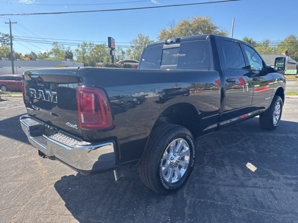 This 2500 Laramie is nicely equipped with Chrome Bumper Package (Bright Front Bumper and Bright Rear Bumper), Laramie Level 1 Plus Equipment Group (#1 Seat Foam Cushion, 115V Auxiliary Rear Power Outlet, 2 Way Rear Headrest Seat, 2nd Row in Floor Storage Bins, 4 Way Front Headrests, Active Lane Management System, Adaptive Steering System, Anti-Spin Differential Rear Axle, Auto Adjust in Reverse Exterior Mirrors, Auto Dim Exterior Mirror, Auto High Beam Headlamp Control, Auto Power-Folding Mirrors, Auto-Dimming Exterior Passenger Mirror, Bucket Seats, Center Stop Lamp with Cargo View Camera, Chrome Exterior Mirrors, Drowsy Driver Detection, Dual Wireless Charging Pad, Exterior Mirrors Courtesy Lamps, Exterior Mirrors with Heating Element, Exterior Mirrors with Memory, Exterior Mirrors with Supplemental Signals, Foam Bottle Insert (door Trim Panel), Folding Flat Load Floor Storage, Forward and Reverse Utility Lights, Front Seat Back Map Pockets, Full Length Upgraded Floor Console, Heated Front Seats, Heated Steering Wheel, High Back Seats, Leather Trimmed Bucket Seats, LED Bed Lighting, Mirror Running Lights, MOPAR Deployable Bed Step, MOPAR Spray in Bedliner, Power 2-Way Driver Lumbar Adjust, Power 2-Way Passenger Lumbar Adjust, Power Adjust 8-Way Driver Seat, Power Adjust 8-Way Front Passenger Seat, Power Adjust Mirrors, Power Adjustable Pedals with Memory, Power Heated Fold Telescopic Mirrors with Memory, Power Telescoping Mirrors, Power-Adjustable Convex Aux Mirrors, Radio/Driver Seat/Mirrors/Pedals Memory, Rain Sensitive Windshield Wipers, Rear 60/40 Folding Seat, Remote Tailgate Release, Traffic Sign Recognition, and Ventilated Front Seats), Quick Order Package 2UH Laramie, 10 Speakers, 20" x 8.0" Polished Aluminum Wheels, 3.73 Axle Ratio, 4-Wheel Disc Brakes, 4G LTE Wi-Fi Hot Spot, 5th Wheel/Gooseneck Towing Prep Group, ABS brakes, Air Conditioning, Alexa Built-in, Alloy wheels, AM/FM radio: SiriusXM with 360L, Apple CarPlay, Apple CarPlay/Android Auto, Auto-dimming Rear-View mirror, Automatic temperature control, Black Wheel Center Hub, Brake assist, Bumpers: body-color, Center Hub, Clearance Lamps, Compass, Connected Travel and Traffic Services, Connectivity - US/Canada, Dash Pass Thru Wire Circuits, Delay-off headlights, Disassociated Touchscreen Display, Driver door bin, Driver vanity mirror, Dual front impact airbags, Dual front side impact airbags, Electronic Stability Control, Emergency Vehicle Alert System (EVAS), For Details, Visit DriveUconnect.com, For More Info, Call 800-643-2112, Front anti-roll bar, Front Center Armrest w/Storage, Front dual zone A/C, Front fog lights, Front reading lights, Fully automatic headlights, Garage door transmitter, Global Telematics Box Module, Google Android Auto, GPS Antenna Input, GPS Navigation, HD Radio, Heated door mirrors, Heated front seats, Heated steering wheel, Illuminated entry, Instrument Panel Mounted Auxiliary Switches, Integrated Voice Command with Bluetooth, Leather Trim 40/20/40 Bench Seat, Low tire pressure warning, Manufacturer's Statement of Origin, MOPAR Front and Rear Rubber Floor Mats, MyFlexCare Service Plan, Navigation System, Occupant sensing airbag, Off-Road Info Pages, Outside temperature display, Overhead airbag, Overhead console, Panic alarm, ParkView Rear Back-Up Camera, Passenger door bin, Passenger vanity mirror, Power door mirrors, Power driver seat, Power passenger seat, Power steering, Power windows, Radio data system, Radio: Uconnect 5 Navigation with 12.0" Display, Rear anti-roll bar, Rear reading lights, Rear seat center armrest, Rear step bumper, Rear window defroster, Remote keyless entry, Security system, Selectable Tire Fill Alert, SiriusXM Radio Service, SiriusXM with 360L, Speed control, Split folding rear seat, Steering wheel mounted audio controls, Tachometer, Tilt steering wheel, Traction control, Trailer Tow Pages, Trip computer, Turn signal indicator mirrors, Variably in
