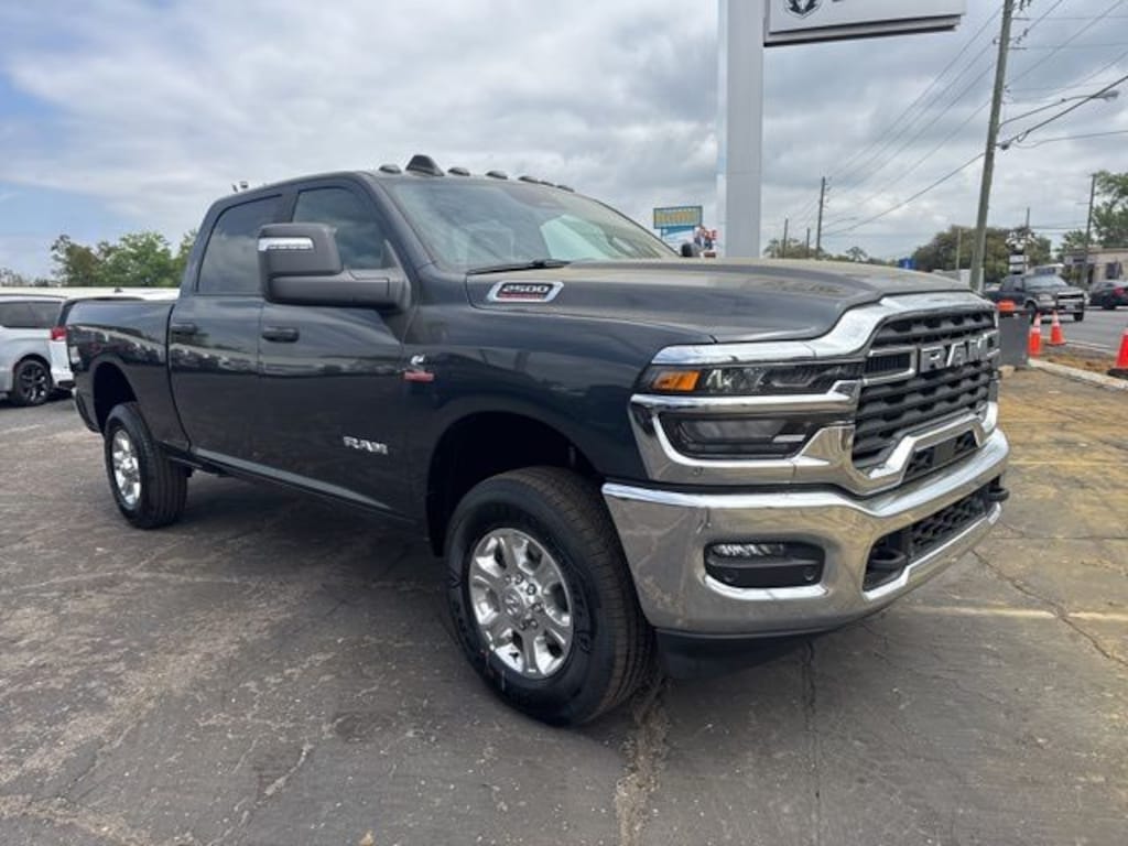 This 2500 Big Horn is nicely equipped with Big Horn Level 1 Plus Equipment Group (12" Touchscreen Display, 2 Way Rear Headrest Seat, 2nd Row in Floor Storage Bins, 4 Way Front Headrests, 40/20/40 Split Bench Seat, 4G LTE Wi-Fi Hot Spot, 9 Alpine Speakers with Subwoofer, Air Conditioning ATC with Dual Zone Control, Alexa Built-in, Anti-Spin Differential Rear Axle, Apple CarPlay, Auto Power-Folding Mirrors, Auto-Dimming Rear-View Mirror, Black Exterior Mirrors, Connected Travel and Traffic Services, Connectivity - US/Canada, Disassociated Touchscreen Display, Dual Glove Boxes, Emergency Vehicle Alert System (EVAS), Exterior Mirrors Courtesy Lamps, Exterior Mirrors with Heating Element, Exterior Mirrors with Supplemental Signals, Foam Bottle Insert (door Trim Panel), Folding Flat Load Floor Storage, Footwell Courtesy Lamp, For Details, Visit DriveUconnect.com, For More Info, Call 800-643-2112, Forward and Reverse Utility Lights, Front Armrest with Cupholders, Front Center Seat Cushion Storage, Front Seat Back Map Pockets, Global Telematics Box Module, Glove Box Lamp, Google Android Auto, GPS Antenna Input, GPS Navigation, HD Radio, Integrated Voice Command with Bluetooth, LED Bed Lighting, Locking Lower Glove Box, Luxury Steering Wheel, Manual Adjust 4-Way Front Passenger Seat, Mirror Running Lights, MOPAR Deployable Bed Step, MOPAR Spray in Bedliner, Off-Road Info Pages, Power 2-Way Driver Lumbar Adjust, Power Adjust 8-Way Driver Seat, Power Adjust Mirrors, Power Heated Folding Telescopic Mirrors, Power Telescoping Mirrors, Power-Adjustable Convex Aux Mirrors, Premium Cloth 40/20/40 Bench Seat, Radio: Uconnect 5 Navigation with 12.0" Display, Rear 60/40 Folding Seat, Rear Dome with on/Off Switch Lamp, Remote Start System, Remote USB Port - Charge Only, Selectable Tire Fill Alert, SiriusXM Radio Service, SiriusXM with 360L, Steering Wheel Mounted Audio Controls, Storage Tray, and Trailer Tow Pages), Heated Seats and Wheel Group (Heated Front Seats and Heated Steering Wheel), Quick Order Package 24Z Big Horn, 4-Wheel Disc Brakes, 5th Wheel/Gooseneck Towing Prep Group, 6 Speakers, ABS brakes, Air Conditioning, Alloy wheels, AM/FM radio: SiriusXM, Apple CarPlay/Android Auto, Brake assist, Bumpers: chrome, Center Hub, Clearance Lamps, Cloth 40/20/40 Bench Seat, Compass, Dash Pass Thru Wire Circuits, Delay-off headlights, Driver door bin, Dual front impact airbags, Dual front side impact airbags, Electronic Stability Control, Front anti-roll bar, Front Center Armrest w/Storage, Front fog lights, Front reading lights, Fully automatic headlights, Heated door mirrors, Illuminated entry, Instrument Panel Mounted Auxiliary Switches, Low tire pressure warning, Manual Adjust 4-Way Driver Seat, Manufacturer's Statement of Origin, MOPAR Front and Rear Rubber Floor Mats, MyFlexCare Service Diesel, Occupant sensing airbag, Outside temperature display, Overhead airbag, Overhead console, Panic alarm, ParkView Rear Back-Up Camera, Passenger door bin, Passenger vanity mirror, Power door mirrors, Power steering, Power windows, Radio data system, Radio: Uconnect 5 with 8.4" Display, Rear anti-roll bar, Rear Folding Seat, Rear seat center armrest, Rear step bumper, Rear Wheelhouse Liners, Rear window defroster, Remote keyless entry, Security system, Speed control, Tachometer, Tilt steering wheel, Traction control, Trip computer, Turn signal indicator mirrors, Variably intermittent wipers, Voltmeter, and Wheels: 18" x 8.0" Polished AluminuM.